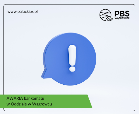 14 kwietnia 2026 Katarzyna GóralskaAktualności0 Szanowni Klienci! W Oddziale w Wągrowcu na chwilę obecną, do odwołania, nie działa bankomat przy ul. Kolejowej 19. Zapraszamy do najbliższego bankomatu przy ul. Janowieckiej 98 w Wągrowcu w markecie BIEDRONKA. Za utrudnienia przepraszamy.