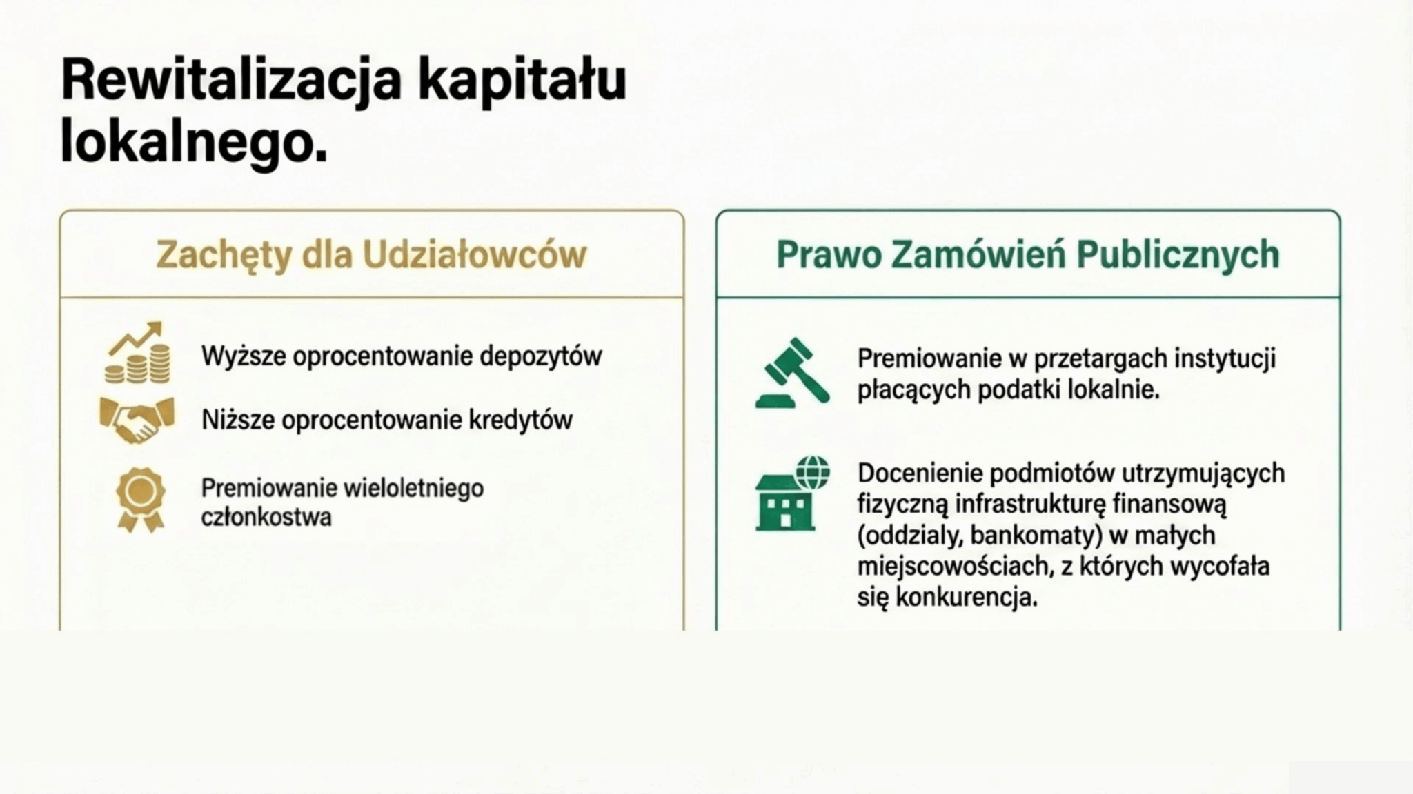 W prezentowanych poniżej grafikach znajdą Państwo najważniejsze postulaty i wnioski sektora bankowości spółdzielczej, zaprezentowane podczas konferencji.